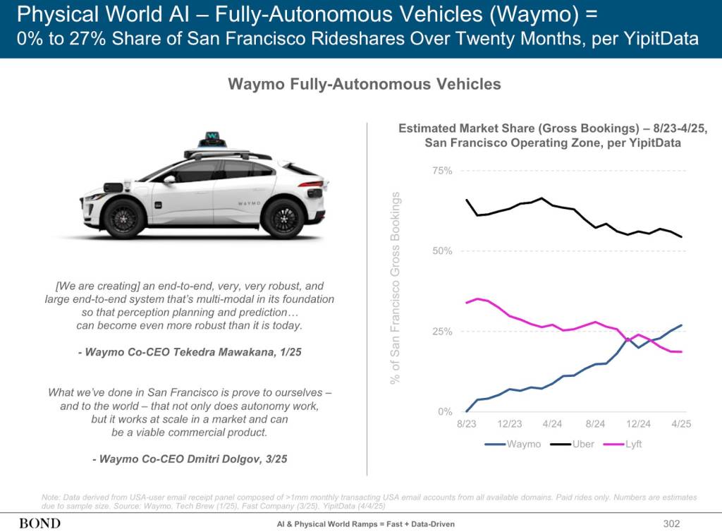 Waymo’s white SUVs, silent except for whirring cameras, cruise every inch of San Francisco, even granted VIP access to car-free Market Street. On June 25th, 2024, exactly one year ago, San Francisco gave Waymo the authority to operate city-wide. Within its inaugural year, Waymo overtook Lyft to become the second most popular ride-hailing service in the city. Waymo, once just a fun conversation starter, is now on the cusp of a commanding takeover of the taxicab business.